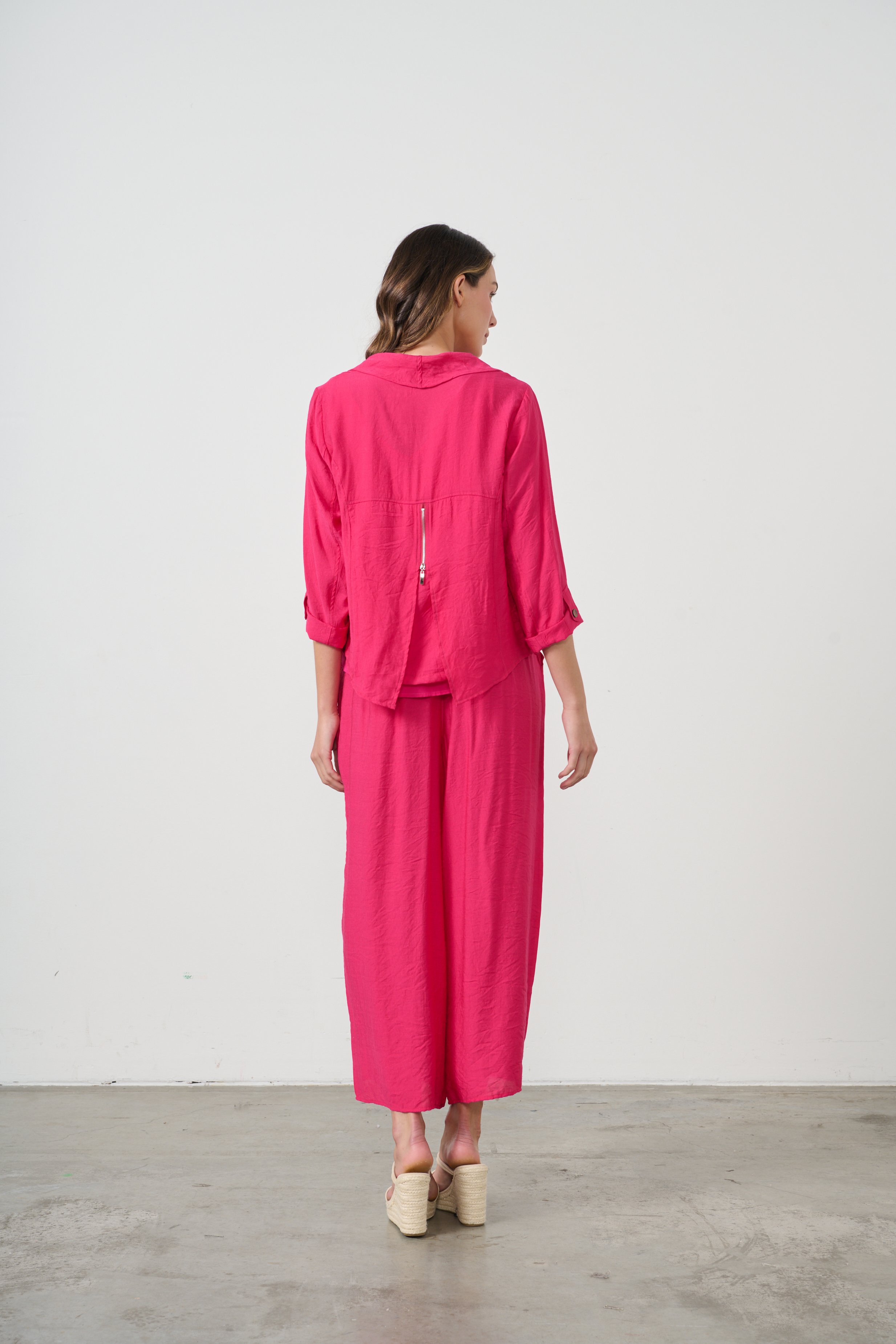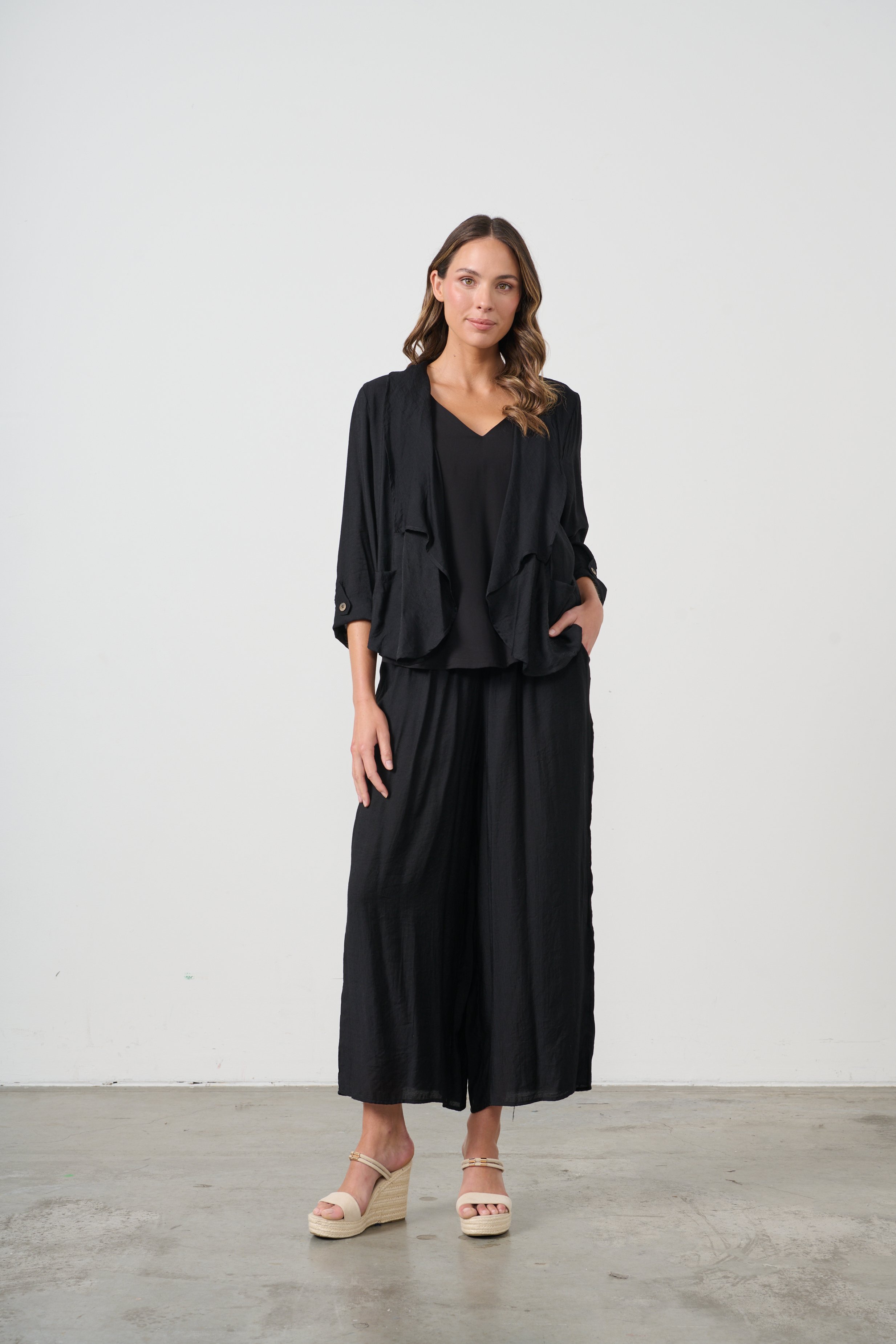 Light weight jacket with a back zip detail, waterfall front and pockets.