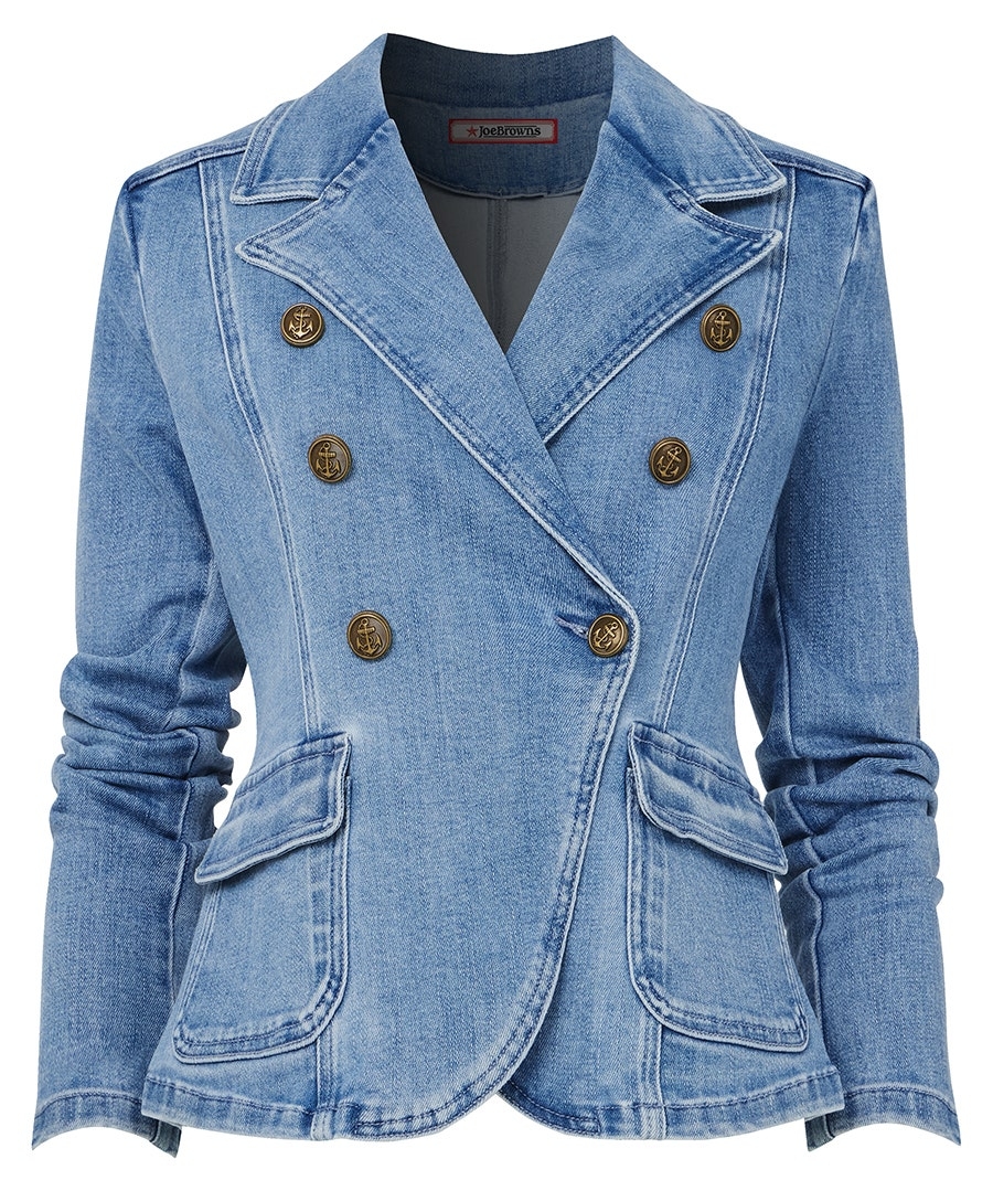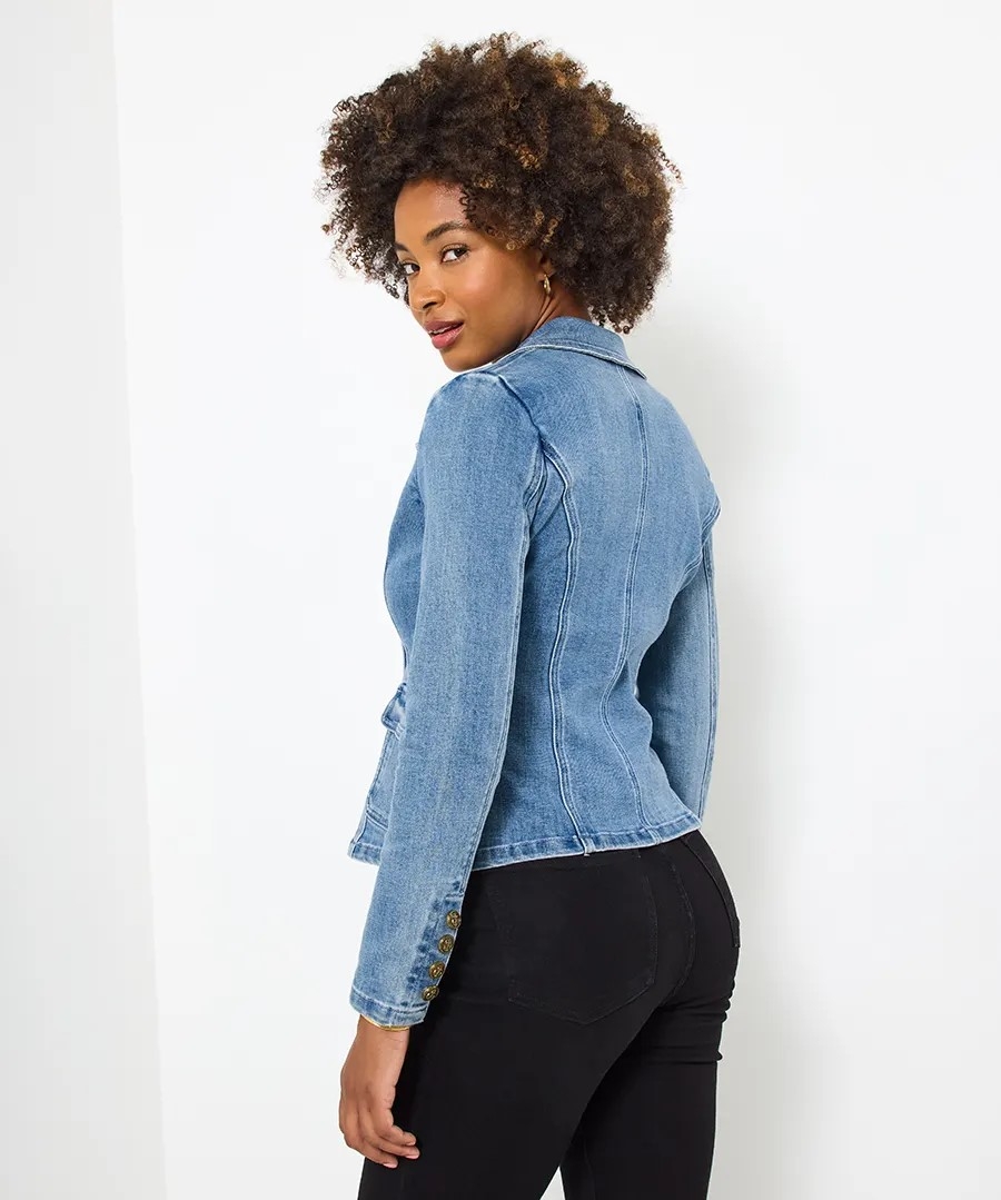 Autumn layering is about to get an upgrade thanks to this cool, casual stretch denim blazer. Dotted with decorative buttons for that extra level of detail, it's super chic paired with all your wardrobe essentials. Use this piece for a stylish double denim look, and you'll stand out for all the right reasons.