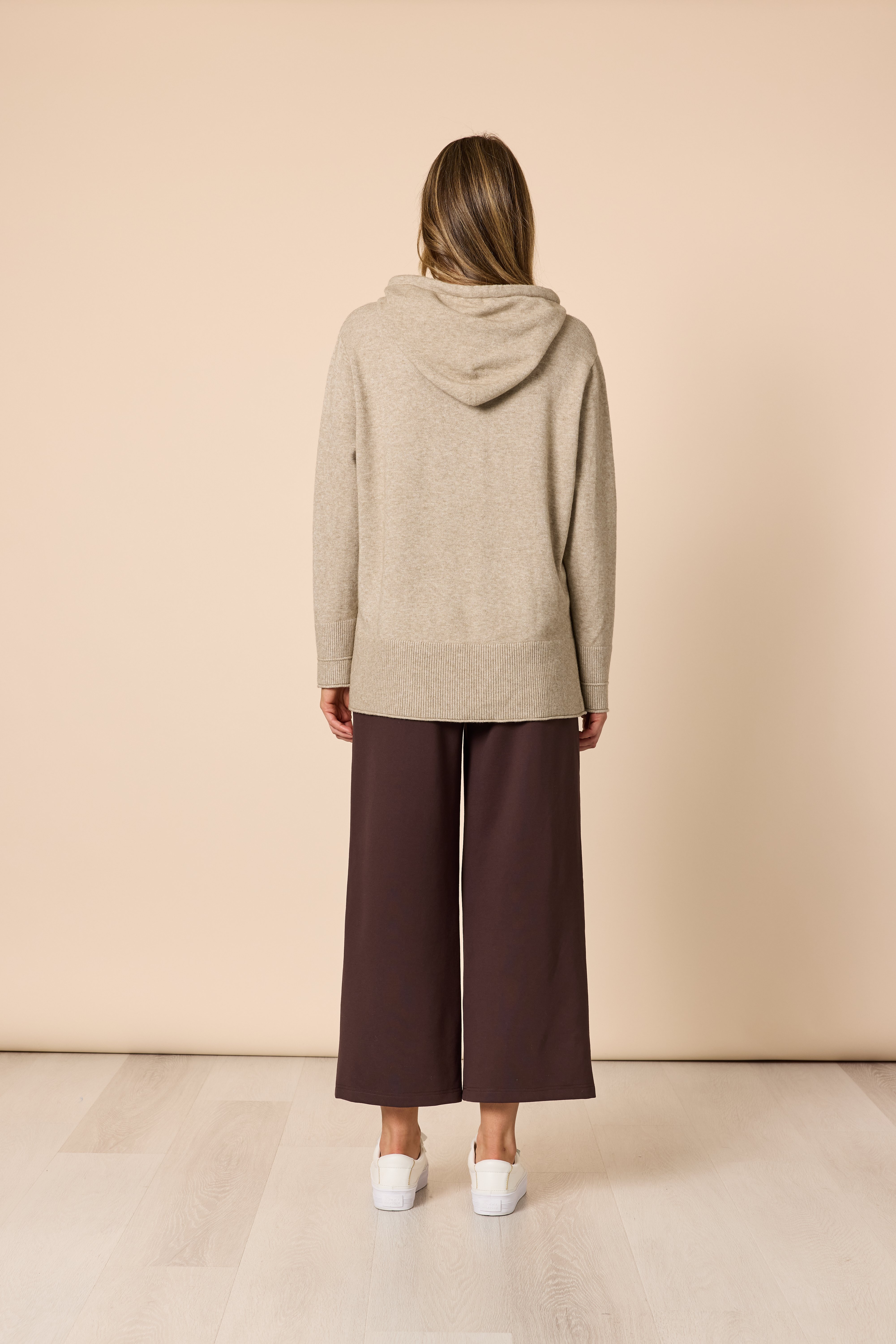 • Crafted in a soft knit with a relaxed silhouette, this hooded style offers an effortless balance of laid-back ease and refined detail.
