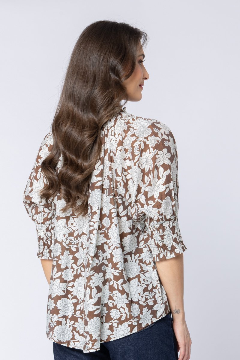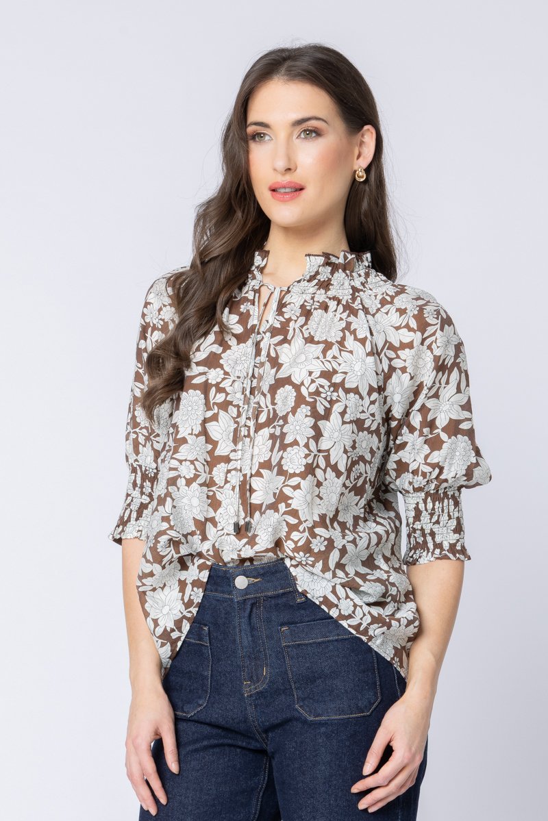 Lovely lightweight blouse with elasticated sleeves & neck tie.