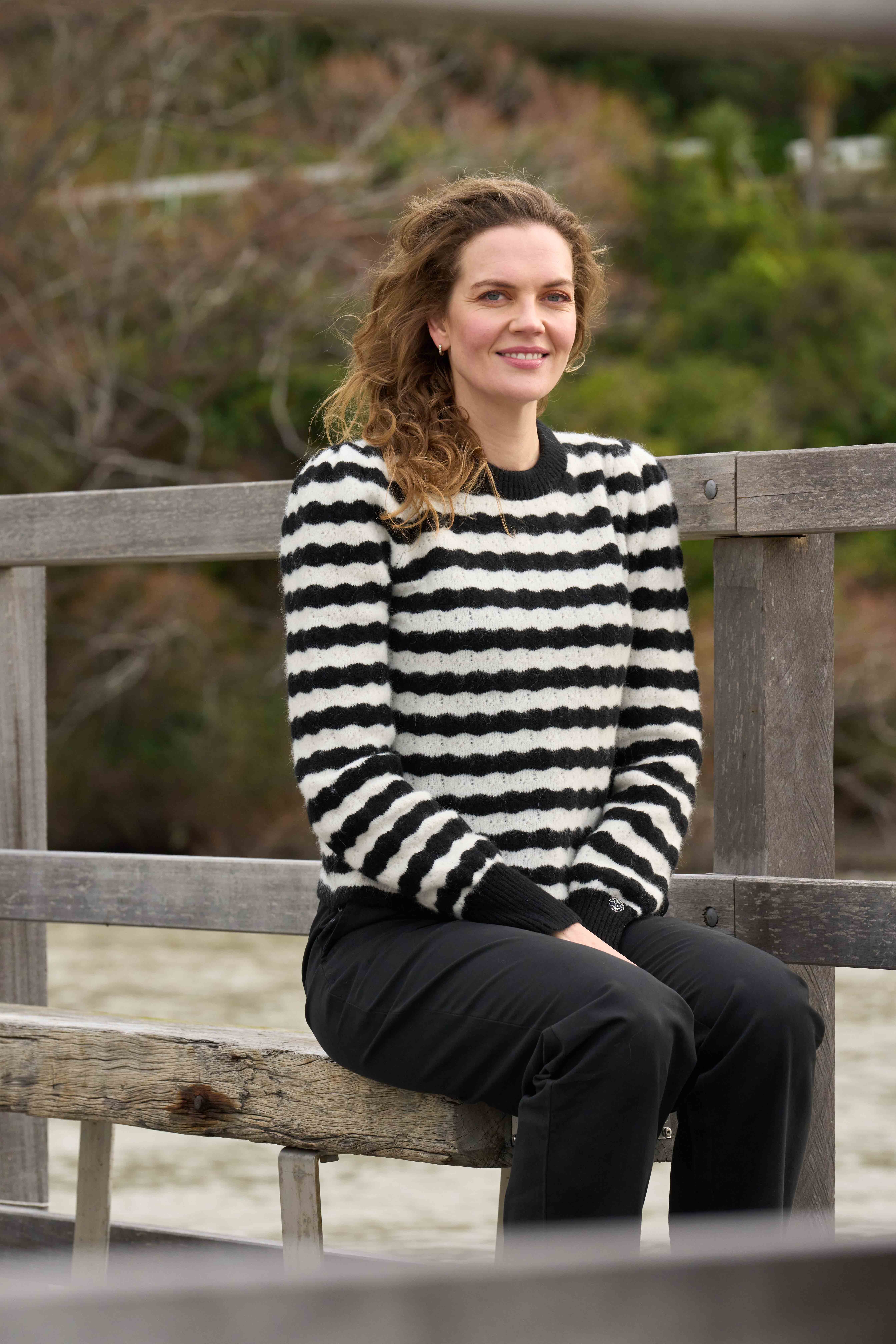 The Grassmere knit is a great layer for winter which features a contrast neck and cuff. The jumper also has a wavy striped contrast pattern. Body length from shoulder to hem is approx. 55cm (Size S).