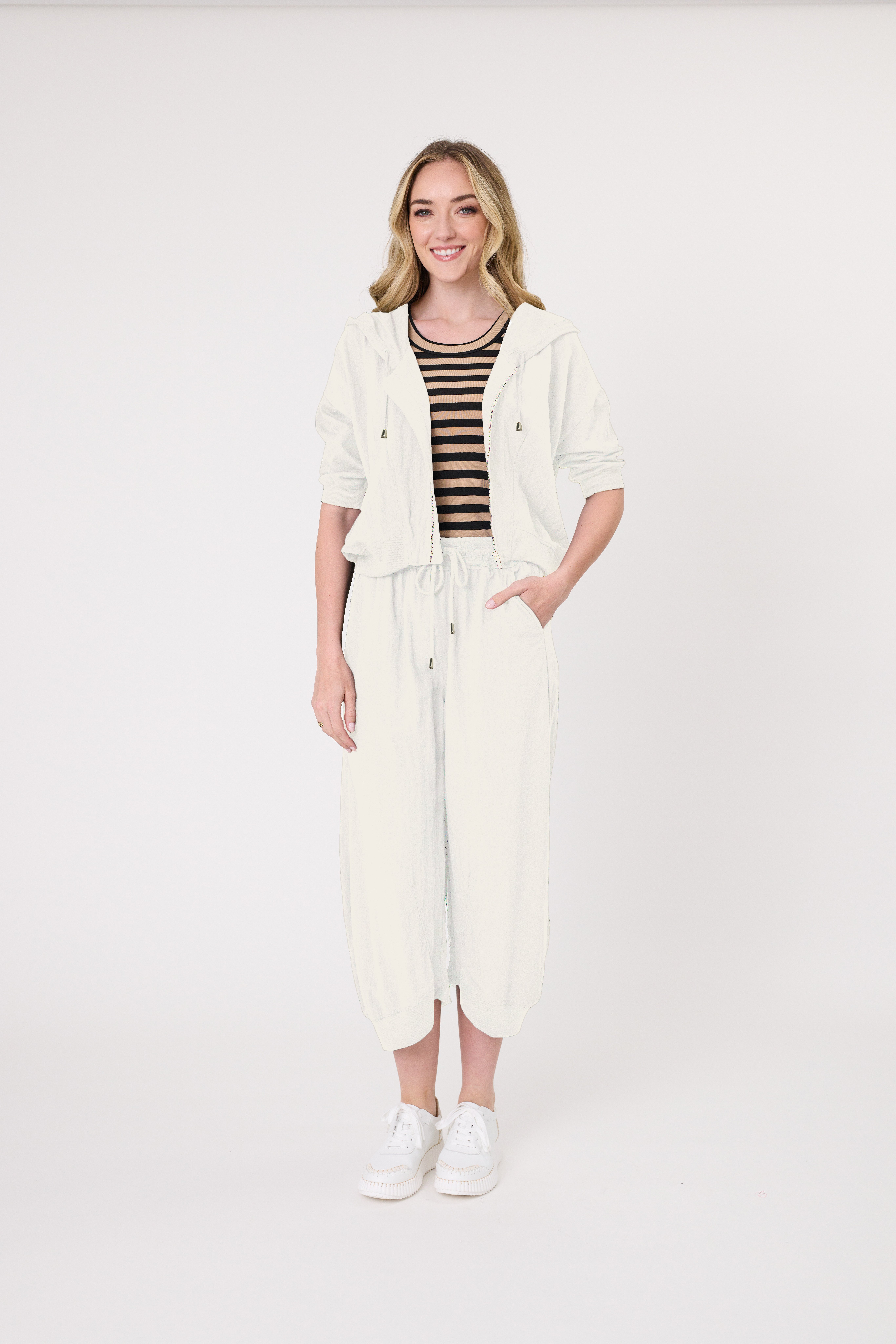• Relaxed jogger pant with a loose fit and three-quarter length.