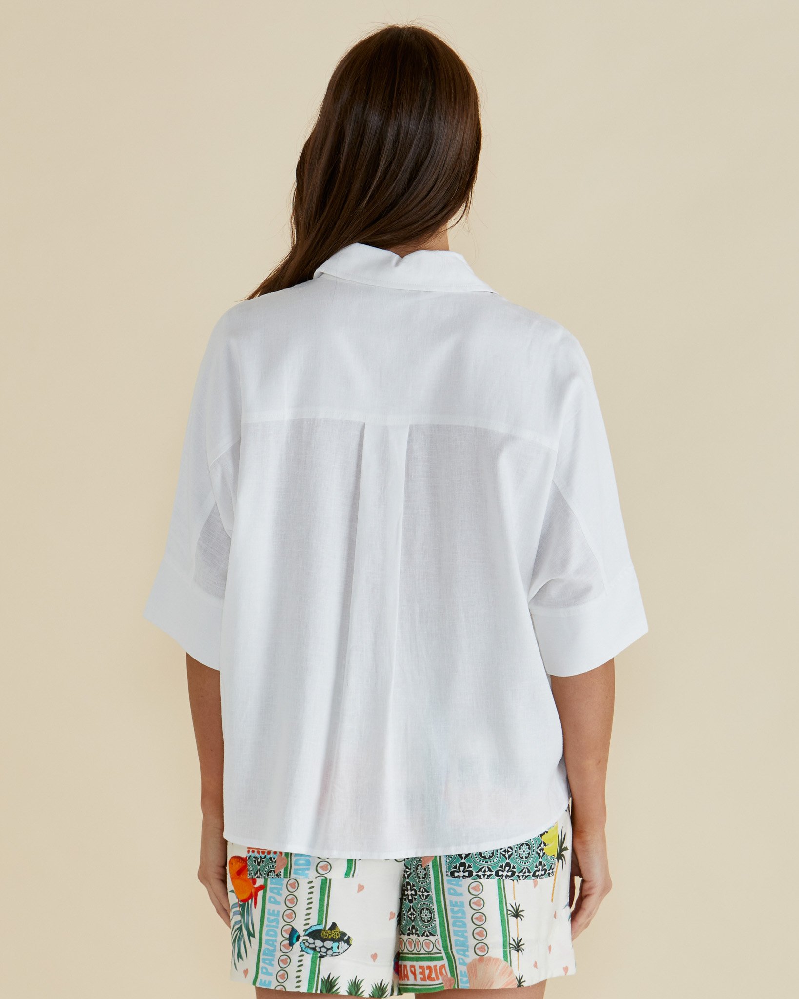The Lynwood Linen Shirt is an oversized classic crafted from a breathable viscose/linen blend. Button-up front with collar and extended split cuffs elevate this relaxed fit essential. The high-low curved hem adds effortless style, making it a perfect transeasonal layering piece that is comfortable and polished.