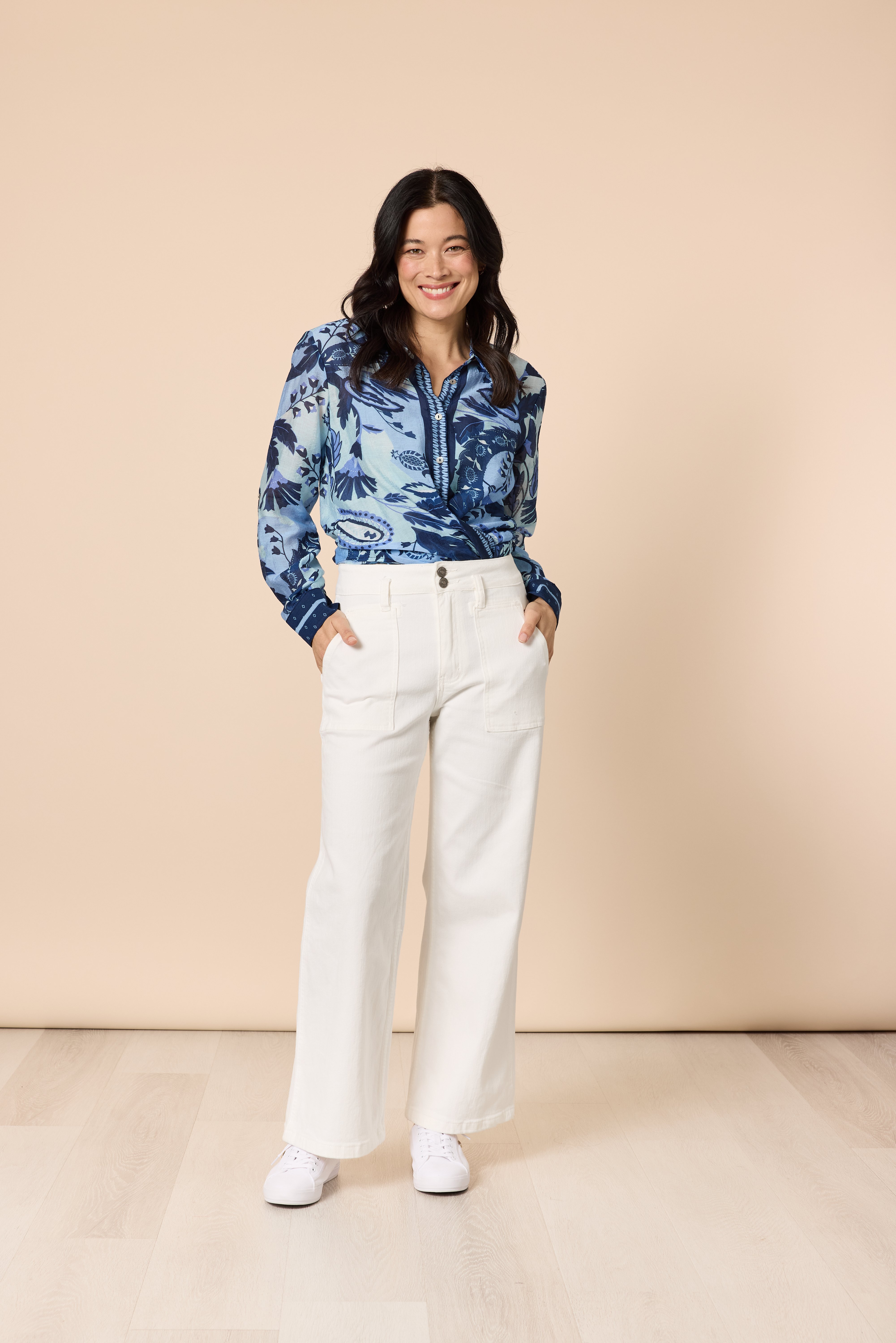 • Crafted from a lightweight, semi-sheer fabric, this easy-fitting shirt features a striking paisley design in soft shades of blue, perfect for relaxed, effortless dressing.