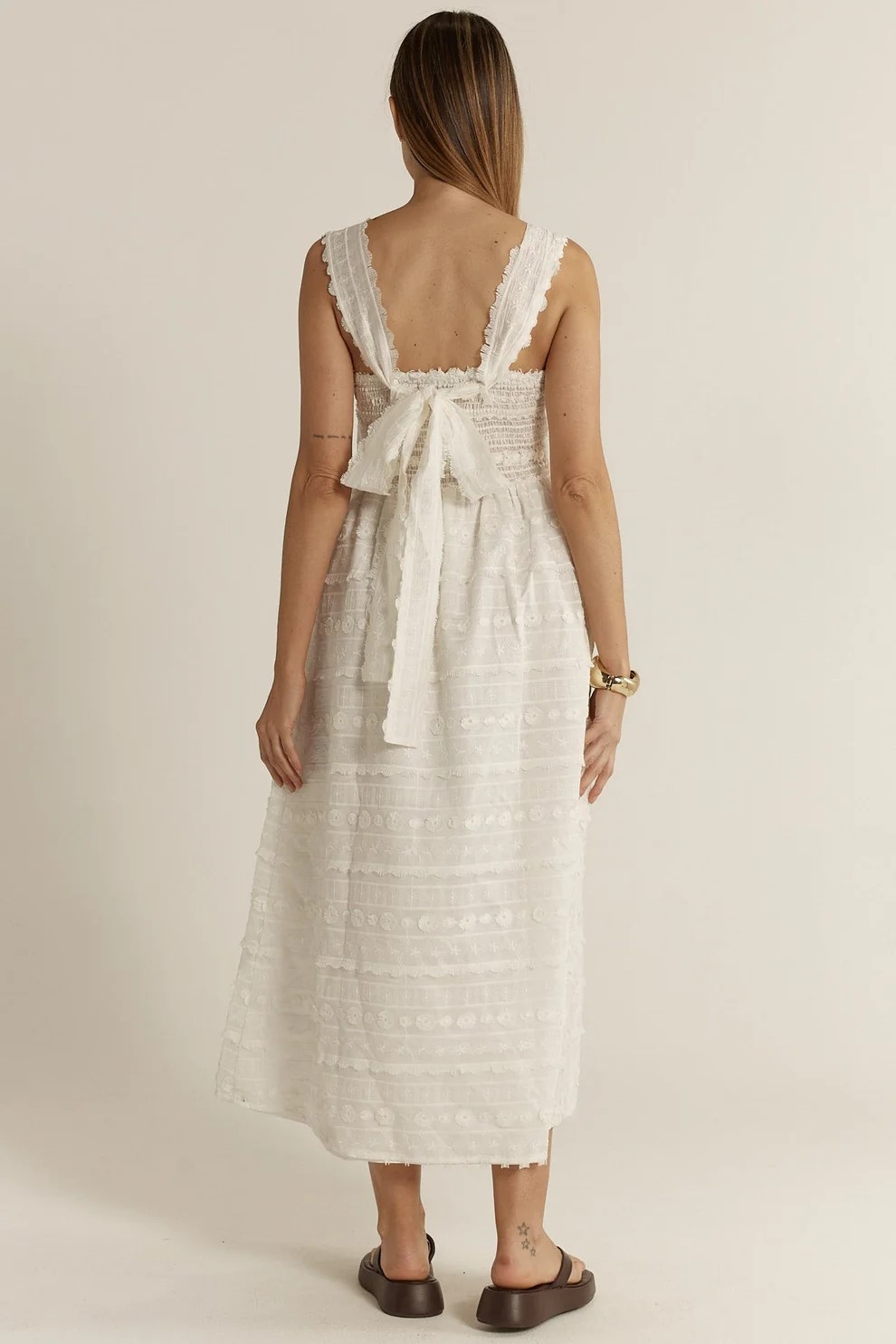 The Sierra Lace Dress captures timeless elegance through intricate texture. Fully lined and crafted in detailed lace, it features adjustable straps and a flowing maxi silhouette. The perfect blend of femininity and sophistication. Effortless beauty with refined allure.