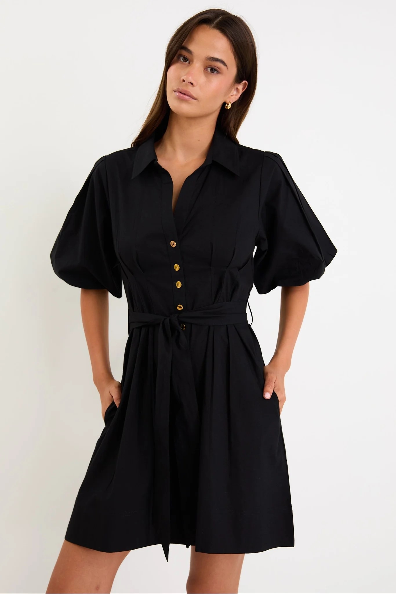 Timeless elegance meets effortless style with the Sundown Black Dress. Designed with a modern silhouette, this versatile mini dress features bold puff sleeves, detailed top stitching, and a waist-cinching tie for a flattering fit. The structured yet lightweight fabric makes it perfect for any occasion, whether you're dressing up for a night out or keeping it casual with sneakers.
