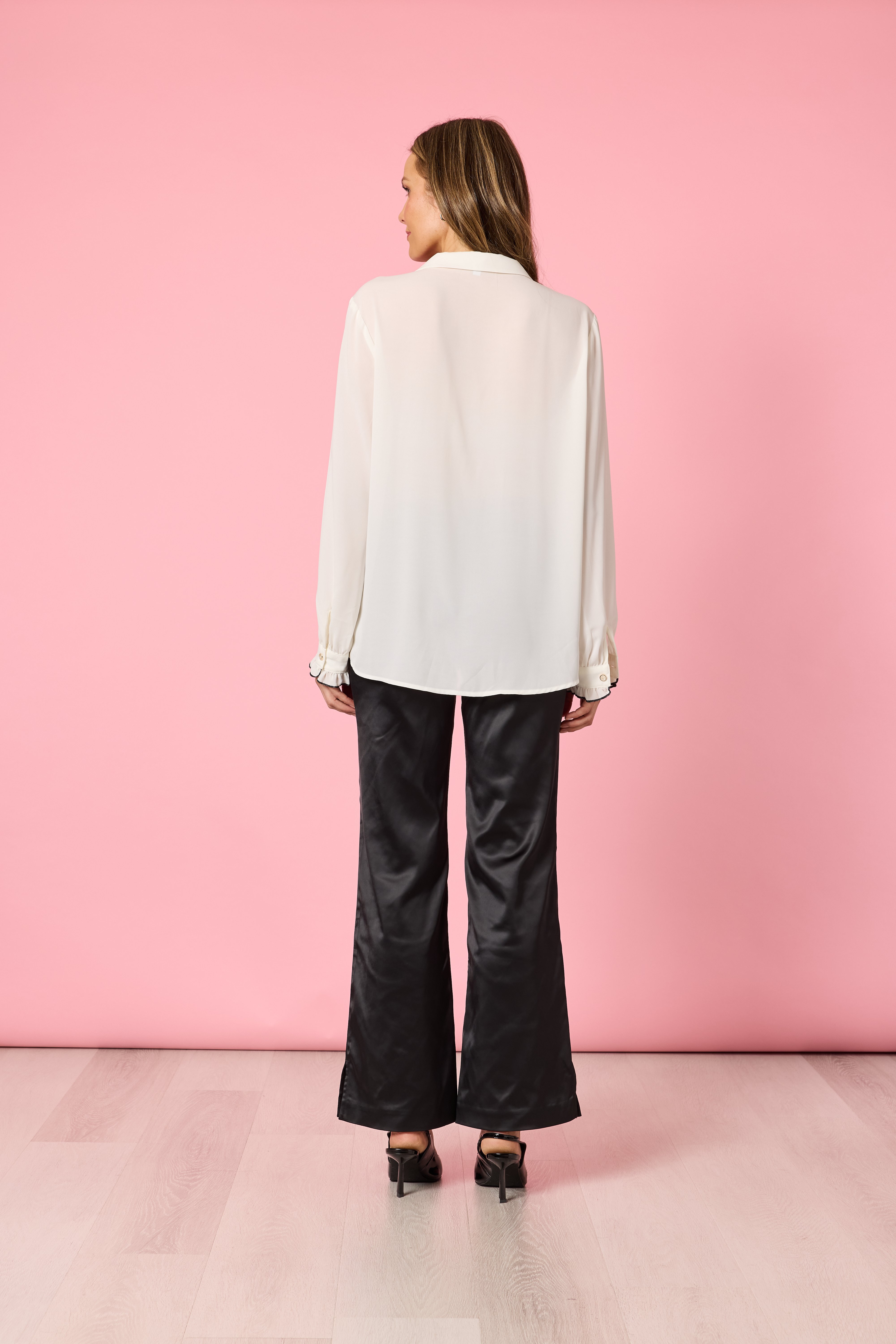 Romantic and refined, the Tuxedo Ruffle Shirt brings a touch of timeless femininity to modern dressing.